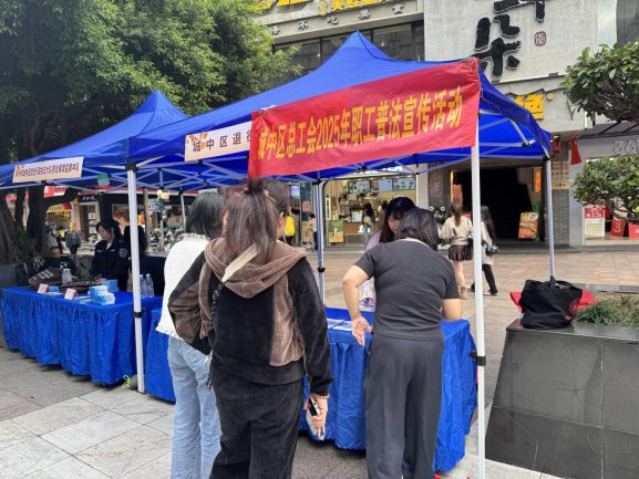 活动当天,城中区总工会工作人员和志愿者深入核心商圈五星步行街等职工聚集地开展普法宣传?;疃殖∩柚昧硕喔鲂?,通过悬挂横幅、摆放展板等方式,吸引众多职工前来参与。工作人员热情地为职工讲解法律法规知识,内容涵盖劳动法、劳动合同法、工会法等与职工切身利益相关的法律法规,帮助职工了解自身权益和义务,引导职工在工作中依法维护自身合法权益?;疃殖」卜⒎欧上喙匦植?00余份。