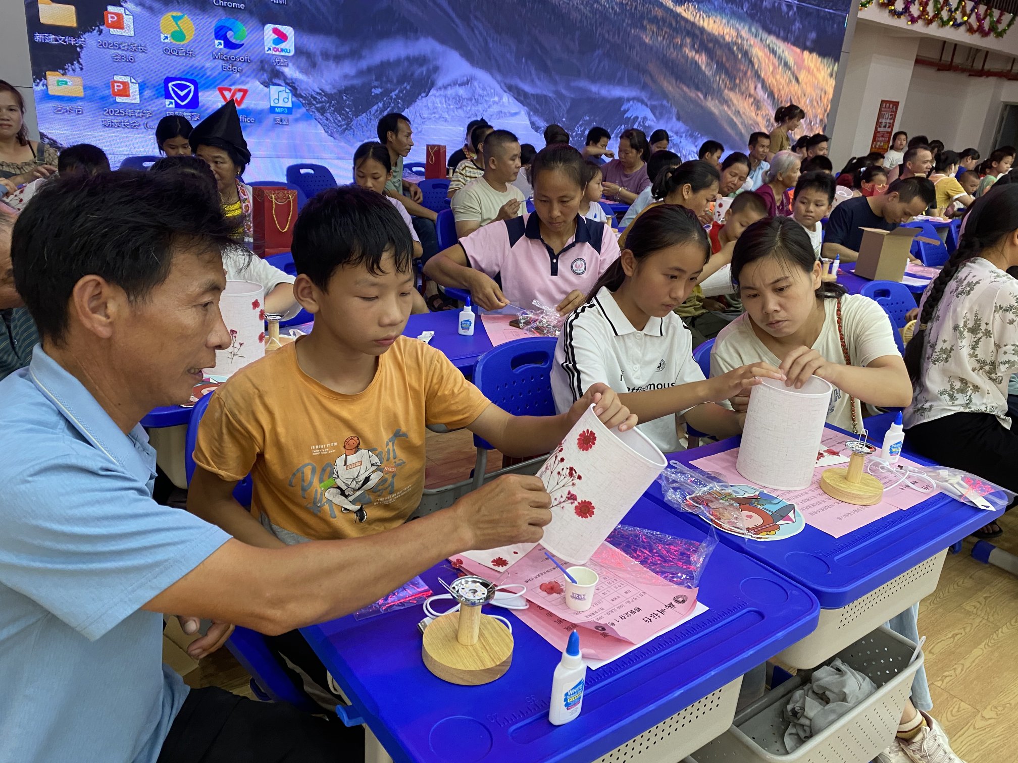 主持人以生动有趣的方式开展清廉家庭建设、防溺水安全知识、货币知识和防诈骗知识的宣讲。通过讲述清廉家庭的典型案例,引导家长们树立廉洁自律的意识,营造良好的家庭风气。同时,结合暑期天气炎热、溺水事故高发的特点,重点强调了防溺水“六不”原则,告诫孩子们远离危险水域,确保自身安全?;疃?,进行了紧张而有趣的有奖问答环节,场上小朋友们纷纷踊跃参与。最后,进行手工台灯制作活动,孩子们在家长的陪伴下,充分发挥自己的想象力,精心设计在灯罩上,制作出美丽的图案。现场洋溢着热烈的气氛,亲子间互动频频,欢声笑语此起彼伏。孩子们兴奋地互相展示自己的作品,脸上洋溢着满满的成就感。