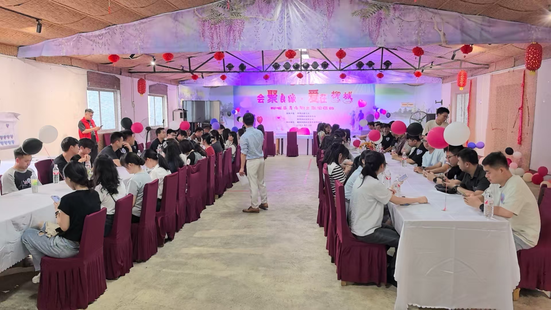 为深入贯彻落实柳城县委县政府人才强县战略部署,切实服务青年职工婚恋交友需求,5月20日,由柳城县总工会、共青团柳城县委员会、柳城县妇女联合会联合主办的“‘会’聚良缘·爱在柳城”——520潮玩CP速配计划在柳城县杨柳岸音乐露营基地温馨启幕。来自全县机关、企事业单位的100名单身青年职工相聚于此,开启一场充满惊喜与浪漫的寻爱之旅。