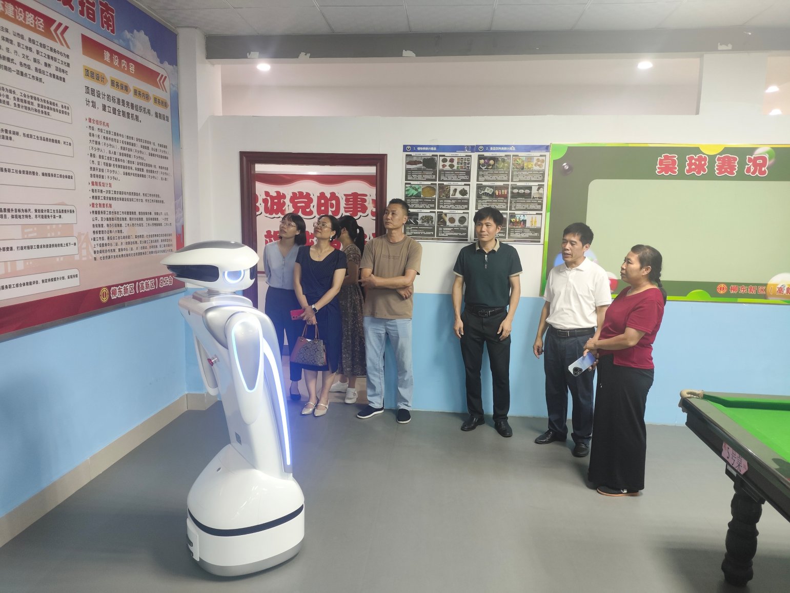 座谈结束后,调研组前往花岭职工之家参观。作为服务产业工人的重要阵地,花岭职工之家设有职工健康服务中心、心理健康咨询室等特色功能区,为工人提供心理疏导、权益维护等全方位服务。调研组成员纷纷对柳东新区(高新区)总工会完善贴心的服务举措点赞。
