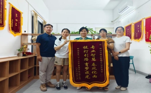 2025年10月17日,柳州市4名青年教师将一面印有“专业智慧,春风化雨;提灯引路,育梦成光?!钡慕跗焖偷搅锨逃せ嶂飨庀龅氖种校行凰诹锨淌Α爸腔鄹改秆行薨唷迸嘌抵杏米ㄒ岛椭腔?,温情暖心地启迪帮助青年教师们在工作和生活中排忧解难,做一名智慧幸福的老师。温情教育暖人心,锦旗相赠寄真情。