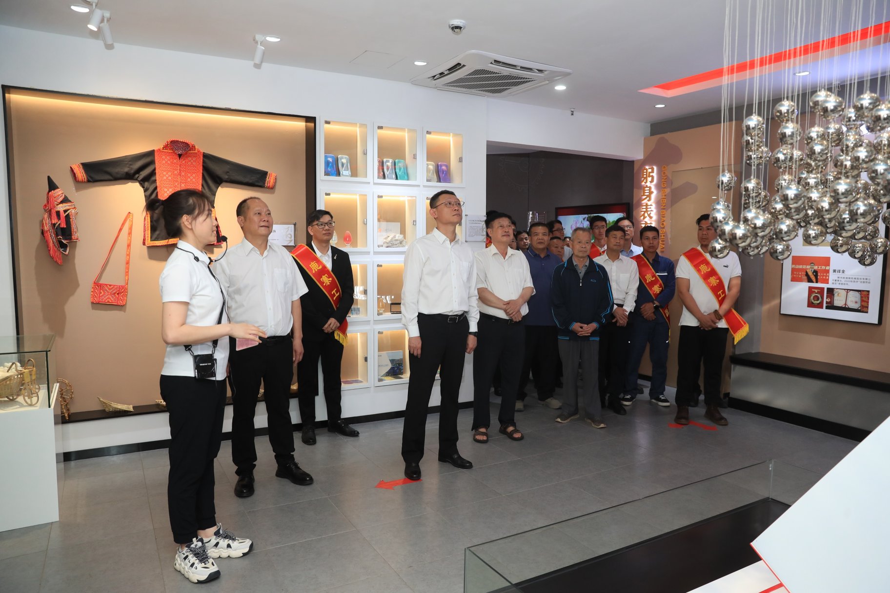 会前,工匠代表们参观了“鹿寨县劳模工匠展厅”。展厅通过丰富的展示手段,全方位、多角度、多层次地呈现了我县不同历史时期各级各类劳动模范、能工巧匠的时代风采、匠心工艺和创新成果,同时展示了新中国成立以来鹿寨工运事业的发展历程,激励着广大职工奋勇前行。