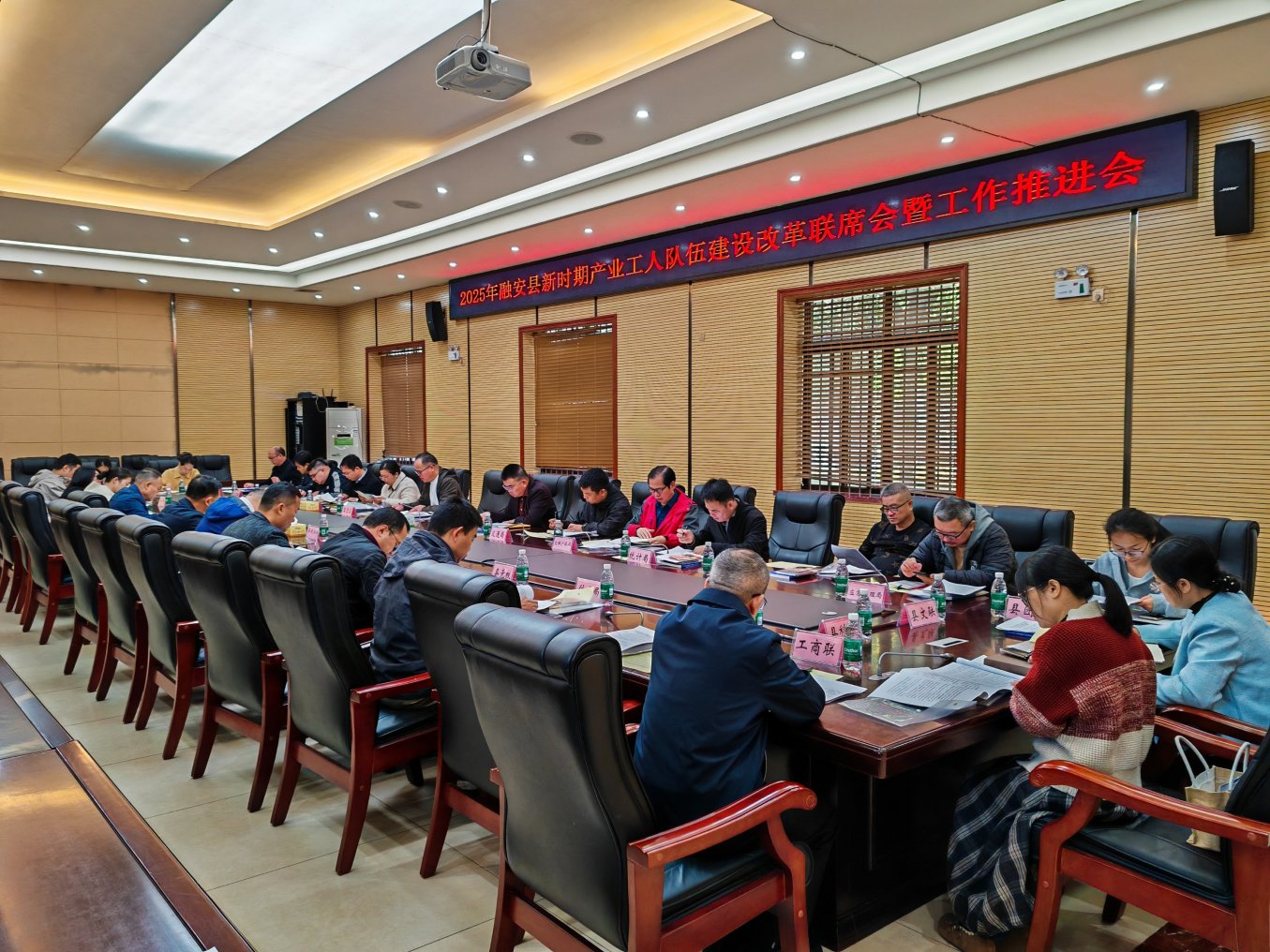 11月14日,融安县新时期产业工人队伍建设改革联席会暨工作推进会在县会议中心第一会议室召开,县级相关单位负责人参加会议。