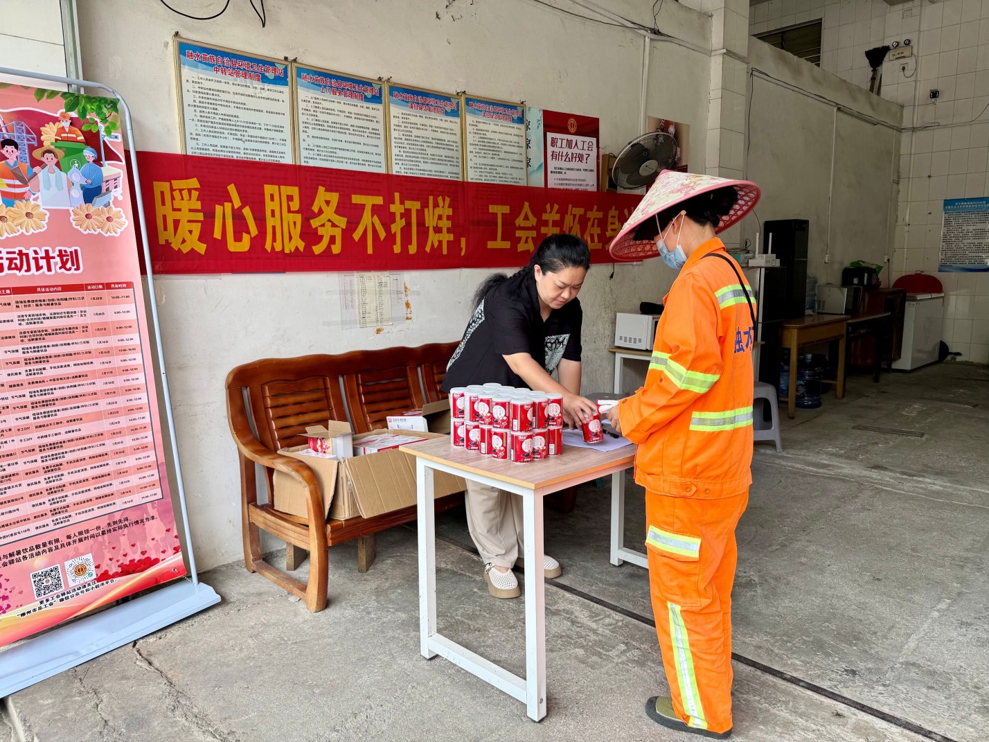 为切实关爱户外劳动者,7月15日,柳州市总工会联合融水苗族自治县总工会、柳州工益集团、融水联通组建志愿者服务队,在融水县城北工会驿站为环卫工人、快递员等户外劳动者开展公益服务,累计服务150余人次。