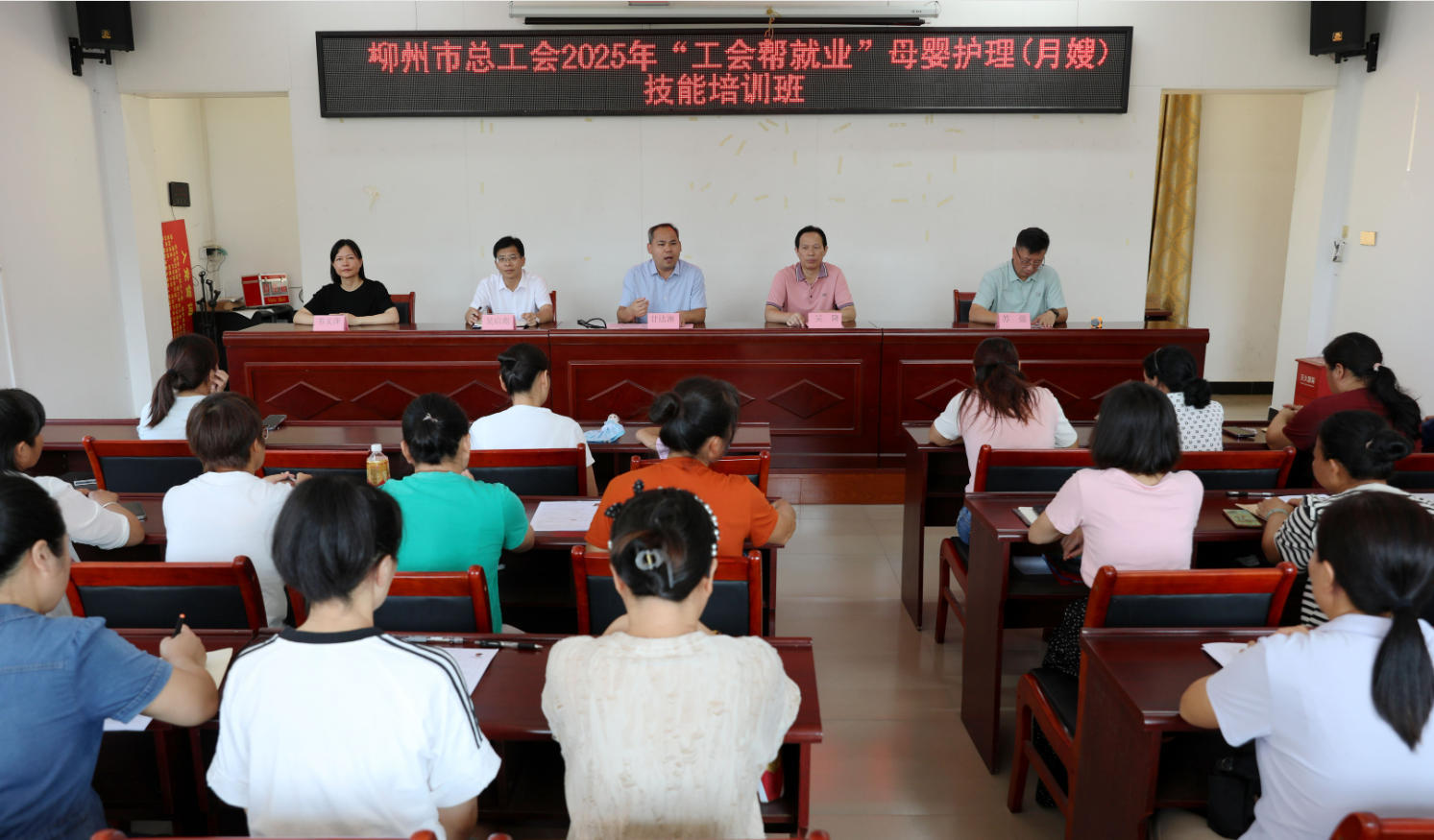 7月30日,柳州市总工会2025年“工会帮就业”母婴护理(月嫂)培训班在三江侗族自治县和平乡板六村开班。市总工会副主席甘达淅在开班仪式上讲话,县政协副主席、县总工会主席吴隆出席开班仪式。