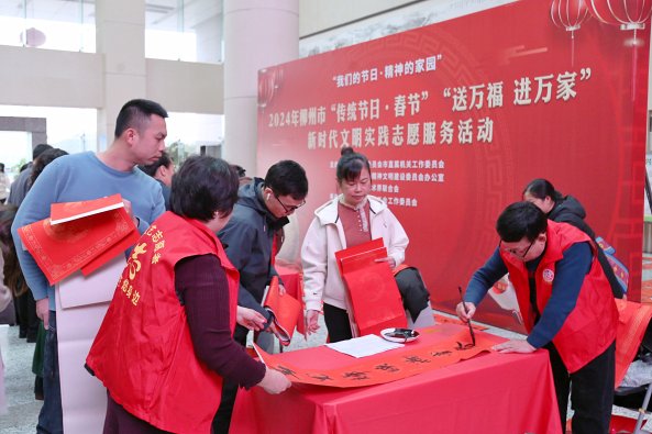 2月1日-2日,市直机关工会工委组织分别在文昌综合楼、启元大厦、三中路大院开展2024年柳州市“传统节日·春节”“送万福 进万家”新时代文明实践志愿服务活动,来自市直机关的1000多名职工群众参加。
