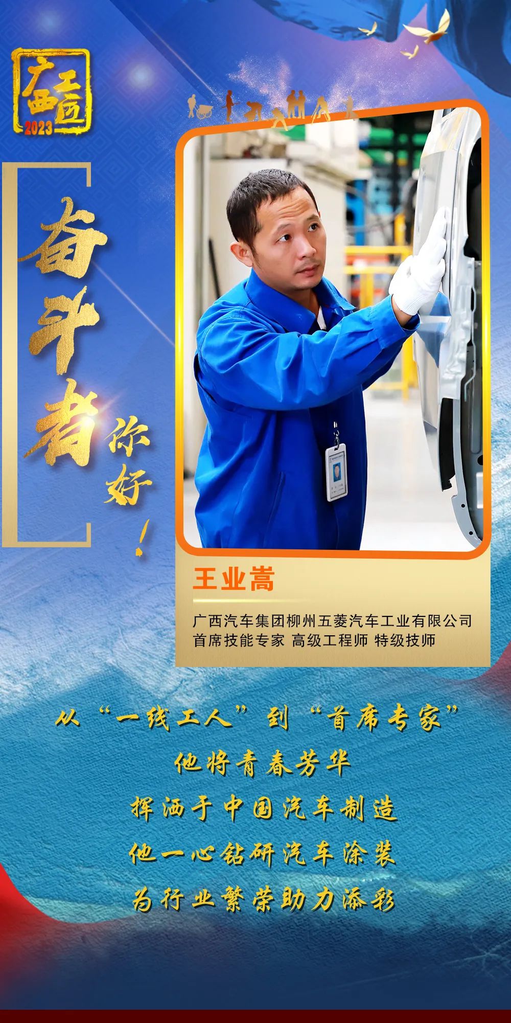 自2004年进入柳州五菱汽车工业有限公司,王业嵩一直在一线从事汽车涂装生产工作。2016年至今,王业嵩带领团队破解生产中多项瓶颈难题,完成现场改善和创新成果共计704项,累计产生经济效益超1200万元。