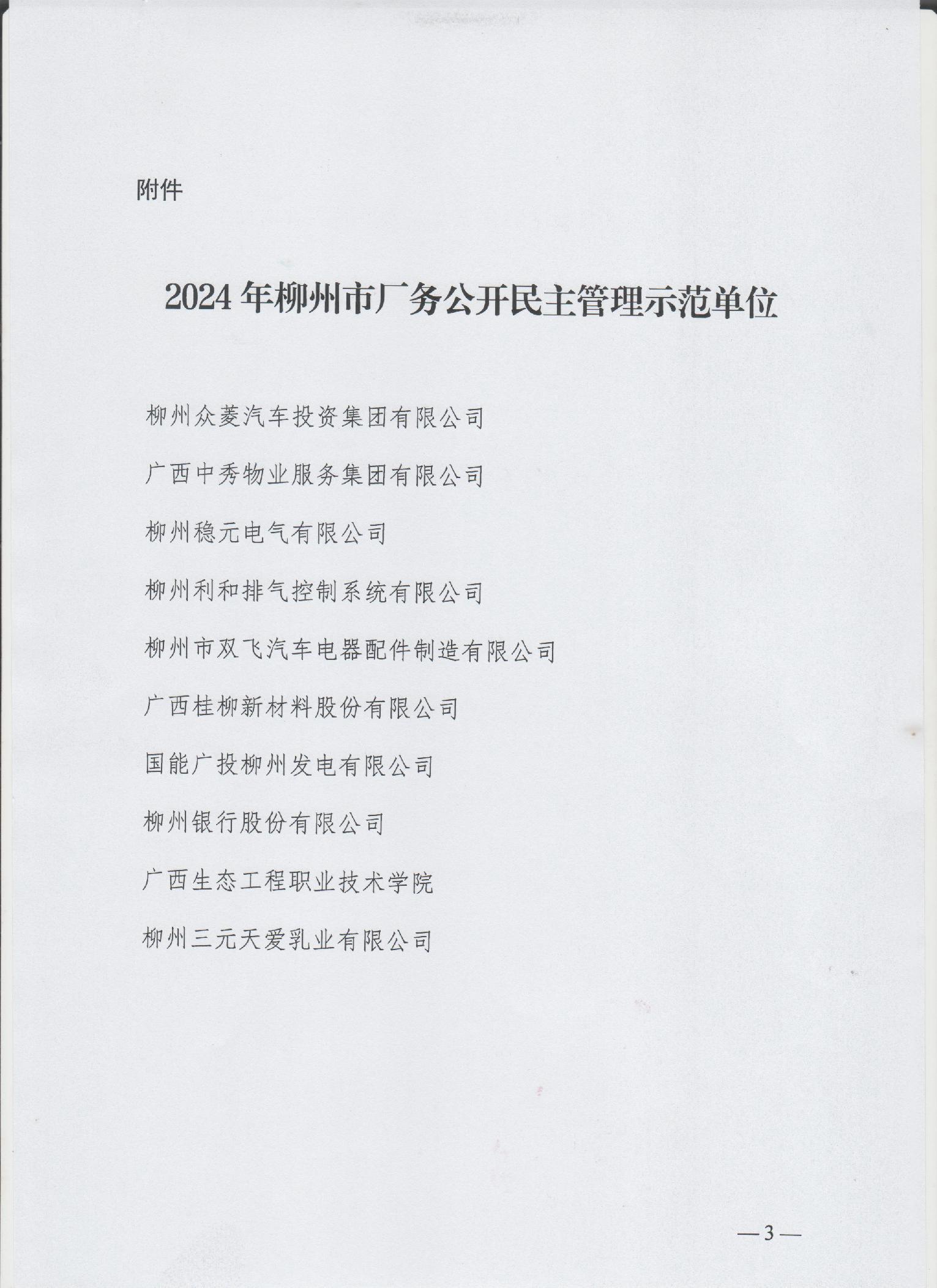 关于2024年度柳州市厂务公开民主管理示范单位的通报