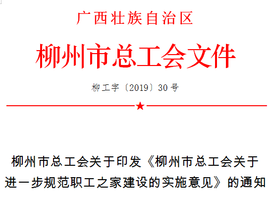 现将《柳州市总工会关于进一步规范职工之家建设见》印发给你们,请结合实际,认真贯彻落实。