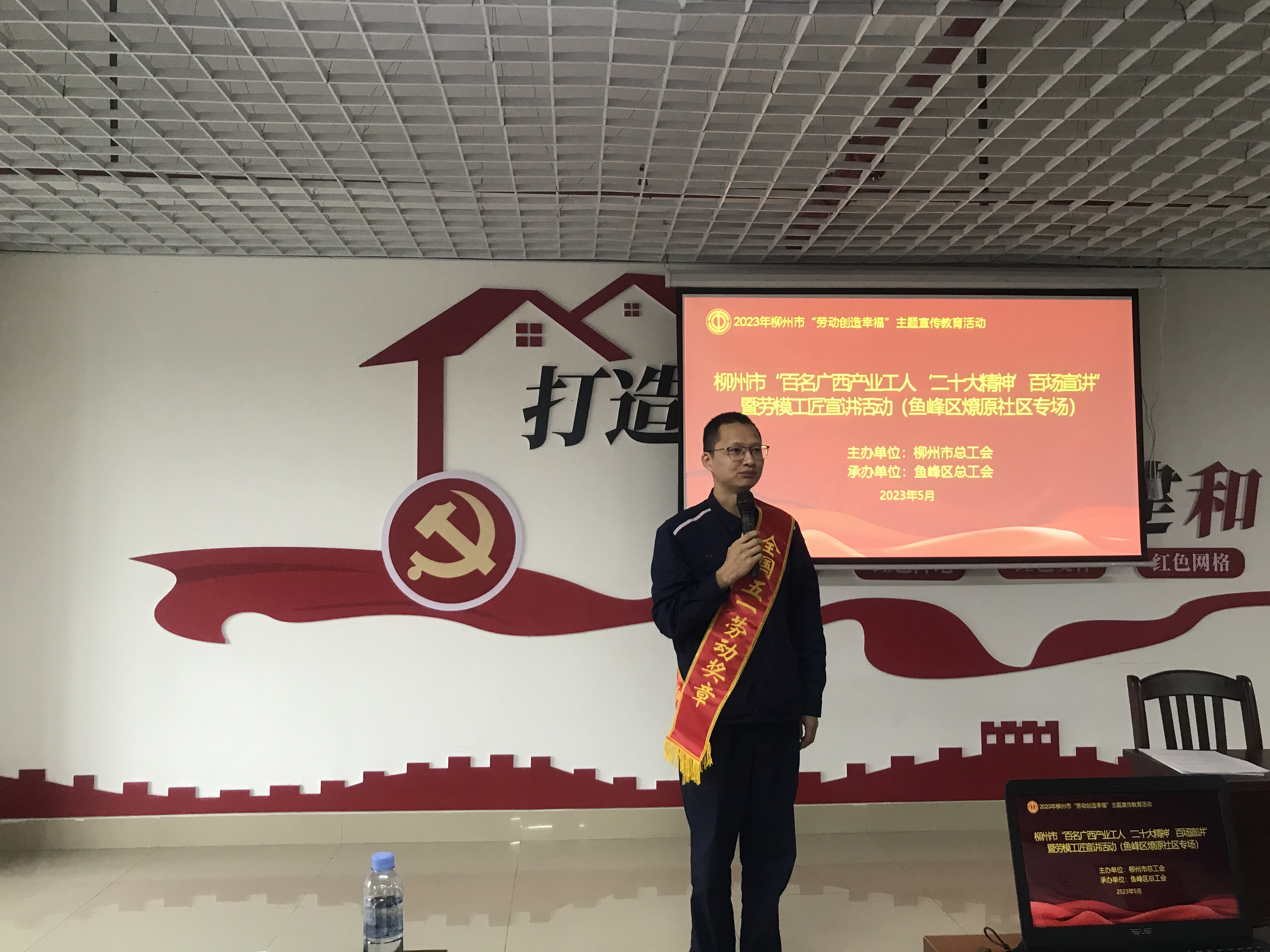 劳动模范和先进工作者,是劳动者的突出代表,是奋斗者的示范标杆。5月11日,柳州市“百名广西产业工人‘二十大精神’百场宣讲”活动走进鱼峰区燎原社区。