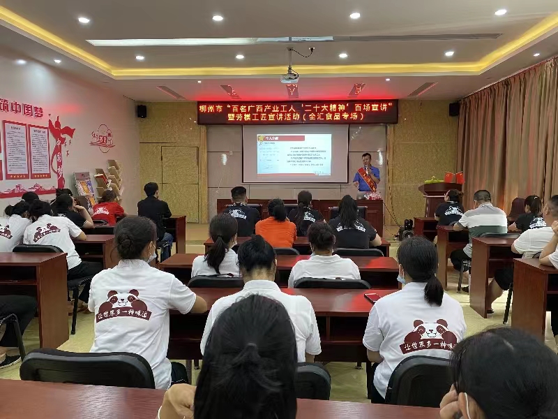 6月27日,“百名广西产业工人‘二十大精神’百场宣讲”活动走进位于白露工业园区的广西全汇食品有限公司,深入推动党的二十大精神在企业落地生根。来自广西产业工人“二十大精神”宣讲团成员、广西工匠、自治区劳动模范全勇受邀参加宣讲。50余名职工代表聆听了本次宣讲。